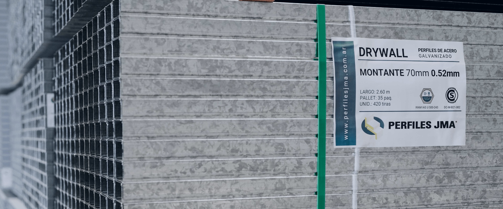 Los perfiles de acero galvanizado para Drywall son fabricados de acuerdo con la norma IRAM IAS U 500-243 y certificación IRAM INTI DC-M-P119-001.1.
