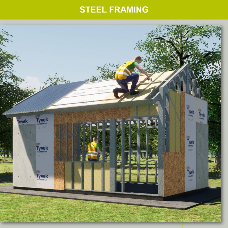 En estas viviendas realizadas íntegramente en Steel Framing, podemos observar que una de las máximas ventajas es que dentro de los muros que componen la envolvente, se puede incluir la aislación térmica ganando superficie en la vivienda y generando un óptimo confort interior.
